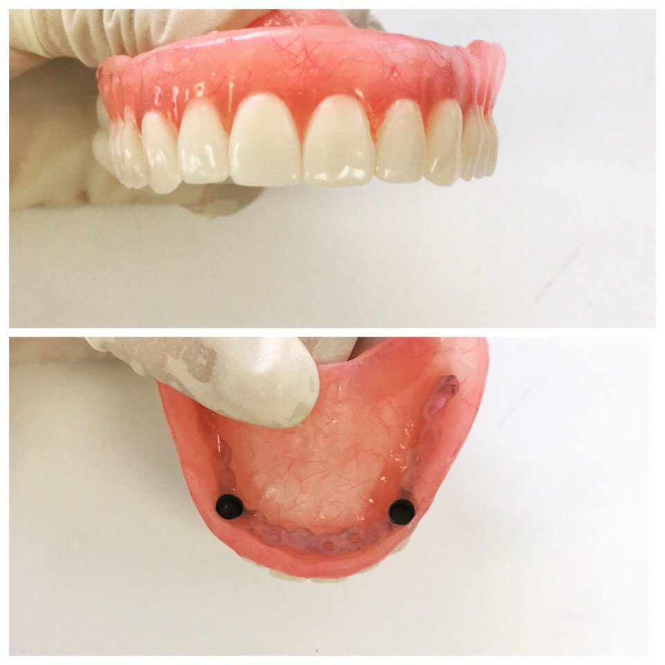 Полный съемный протез на двух имплантах.